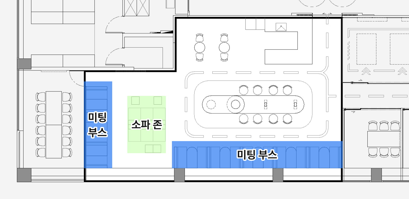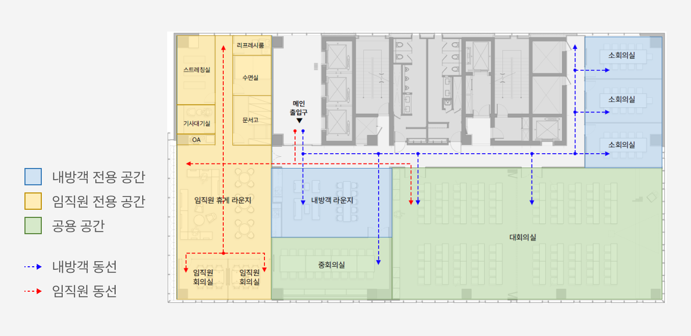 - 조직 문화, 업무 방식, 기업 정체성을 아우르는 공간 디자인 콘셉트 제안